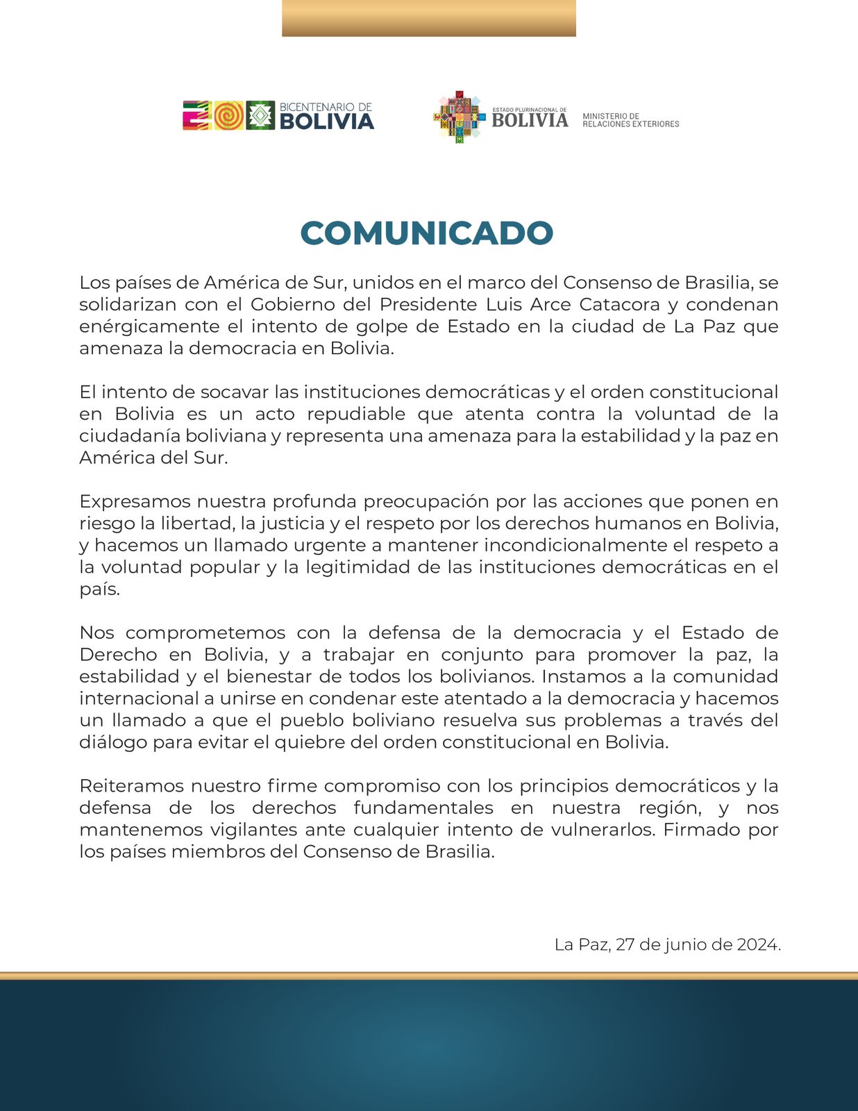COMUNICADO 03-06-2025 (Bolivia denuncia acciones desestabilizadoras contra el gobierno nacional)