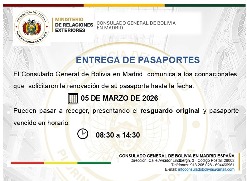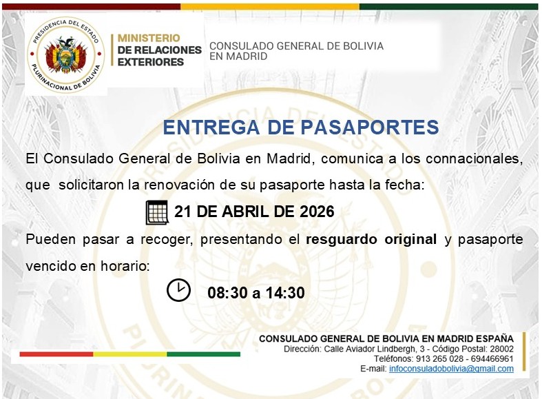 CONSULADO GENERAL DE BOLIVIA EN MADRID - ESPAÑA