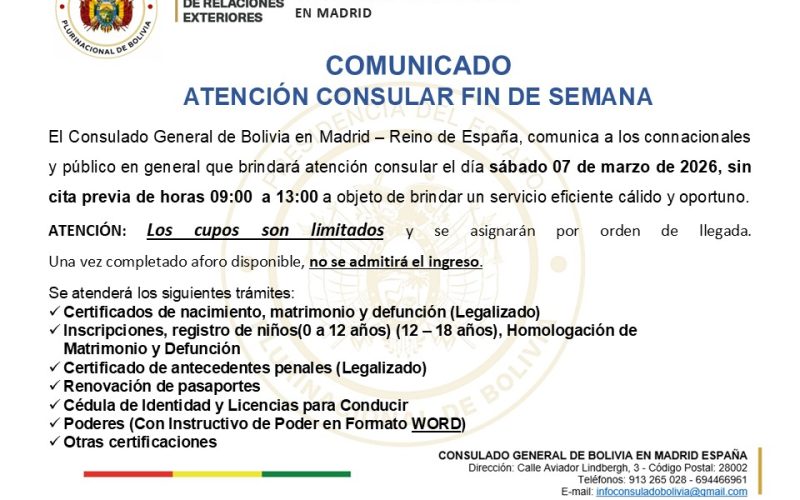 CONSULADO GENERAL DE BOLIVIA EN MADRID - ESPAÑA