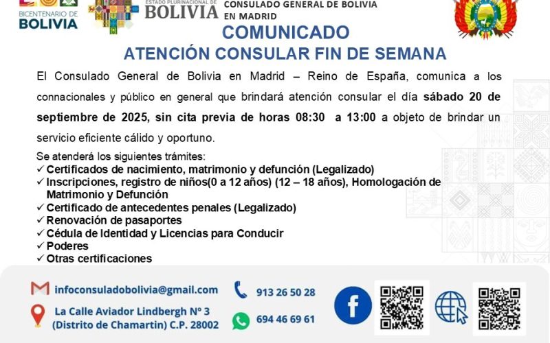 CONSULADO GENERAL DE BOLIVIA EN MADRID - ESPAÑA