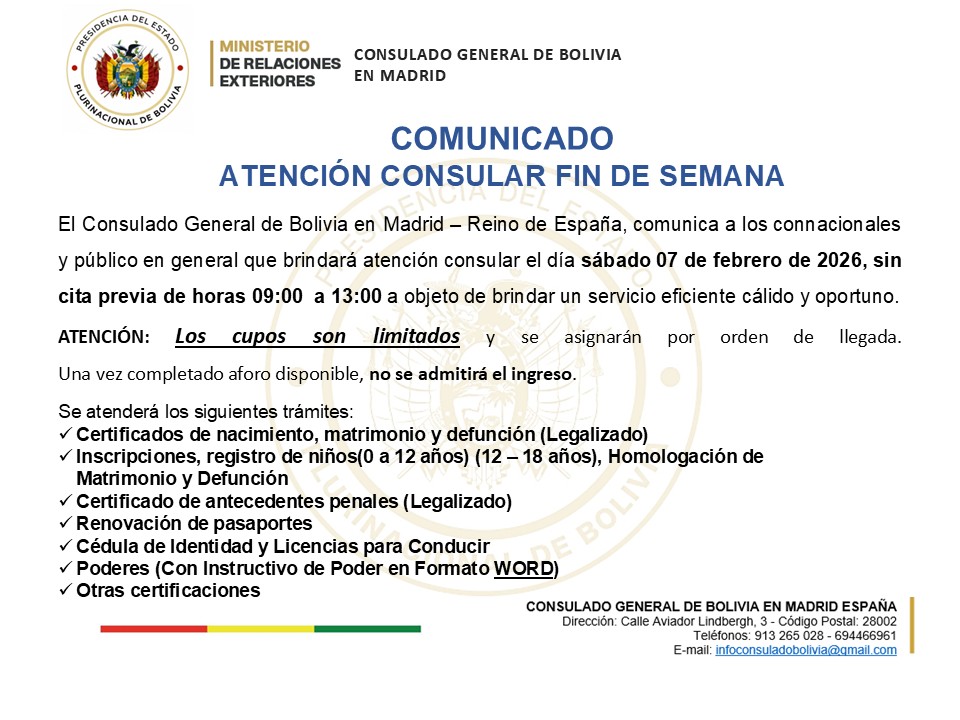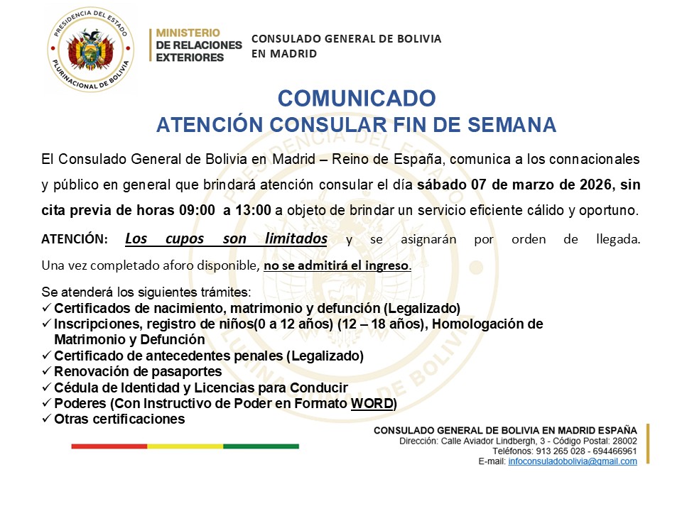 ATENCIÓN CONSULAR DE PRIMER SÁBADO DE CADA MES