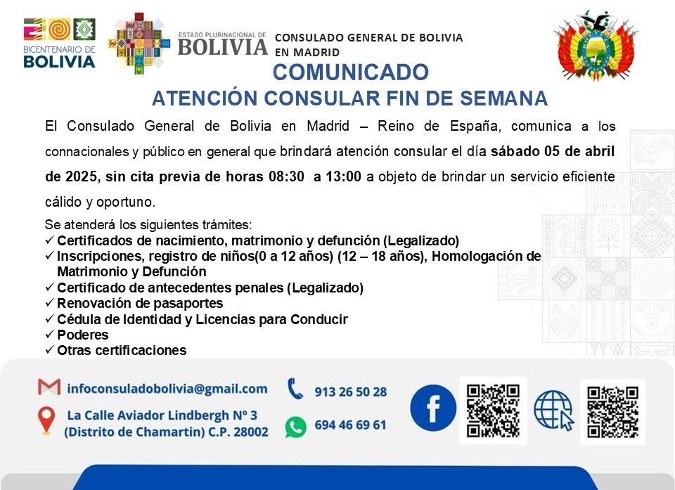 ATENCIÓN CONSULAR DE PRIMER SÁBADO DE CADA MES