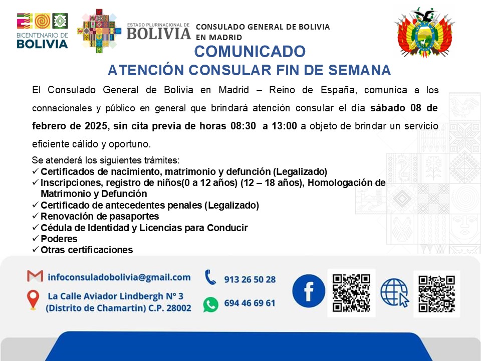 Este domingo, 12 de enero de 2025, el Consulado General de Bolivia en Madrid se desplazó a Castilla y León, ciudad de …